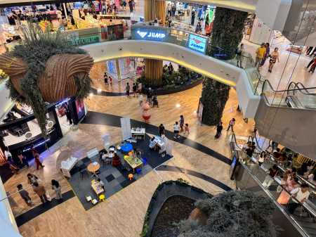 吹き抜けのイベントスペースは「クリスマスイベント」で賑わい、1Fの有名なバーは平日の昼にも関わらず満席だった。